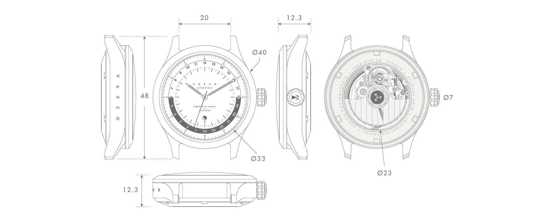 La garantie de nos produits est de deux ans à compter de la date d'expédition. Elle ne couvre aucun dommage sur une partie de la montre résultant d'une utilisation anormale, d'un manque de soin, de négligence, d'accidents, d'une utilisation incorrecte de la montre et du non-respect des instructions fournies.